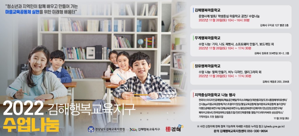 11월 26일(토) 김해 행복교육지구 수업나눔 행사가 진행됩니다.