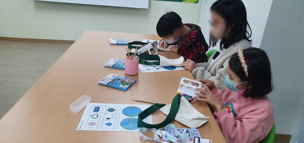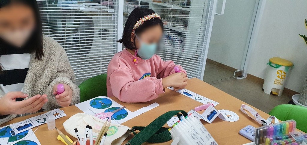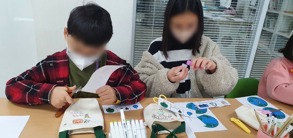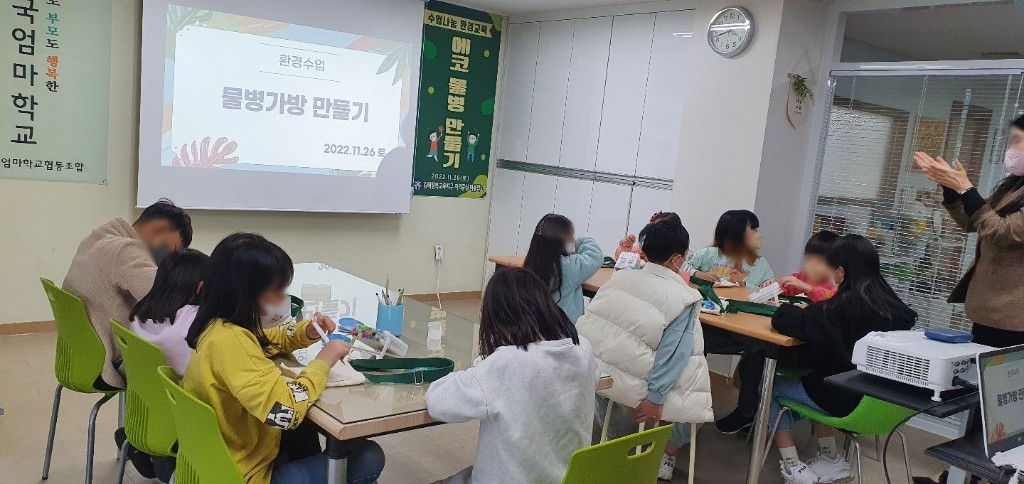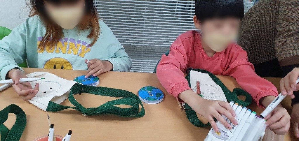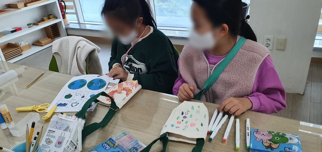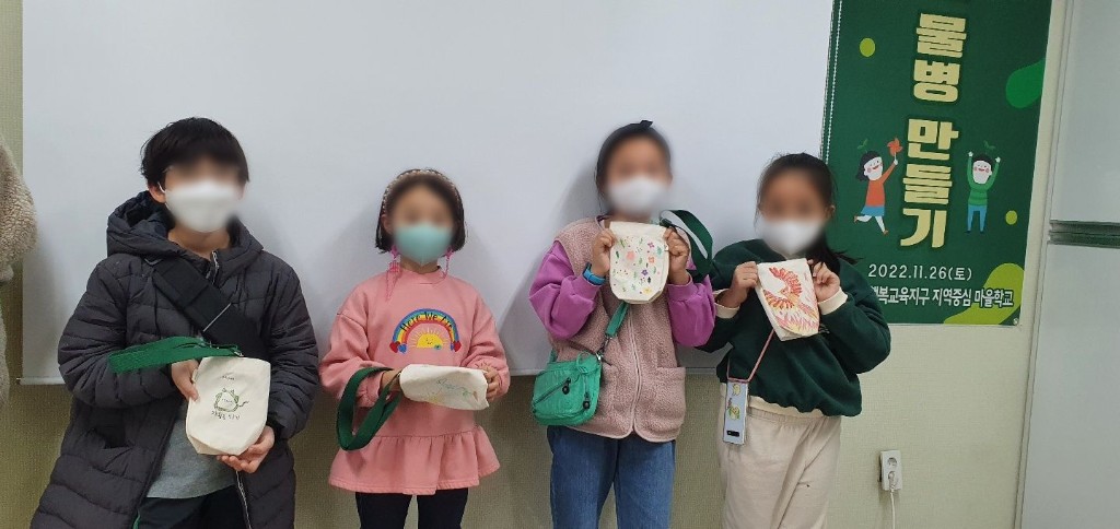 환경보호에 대해 알아보고 친환경 물병 가방 만들기를 진행 하였습니다.